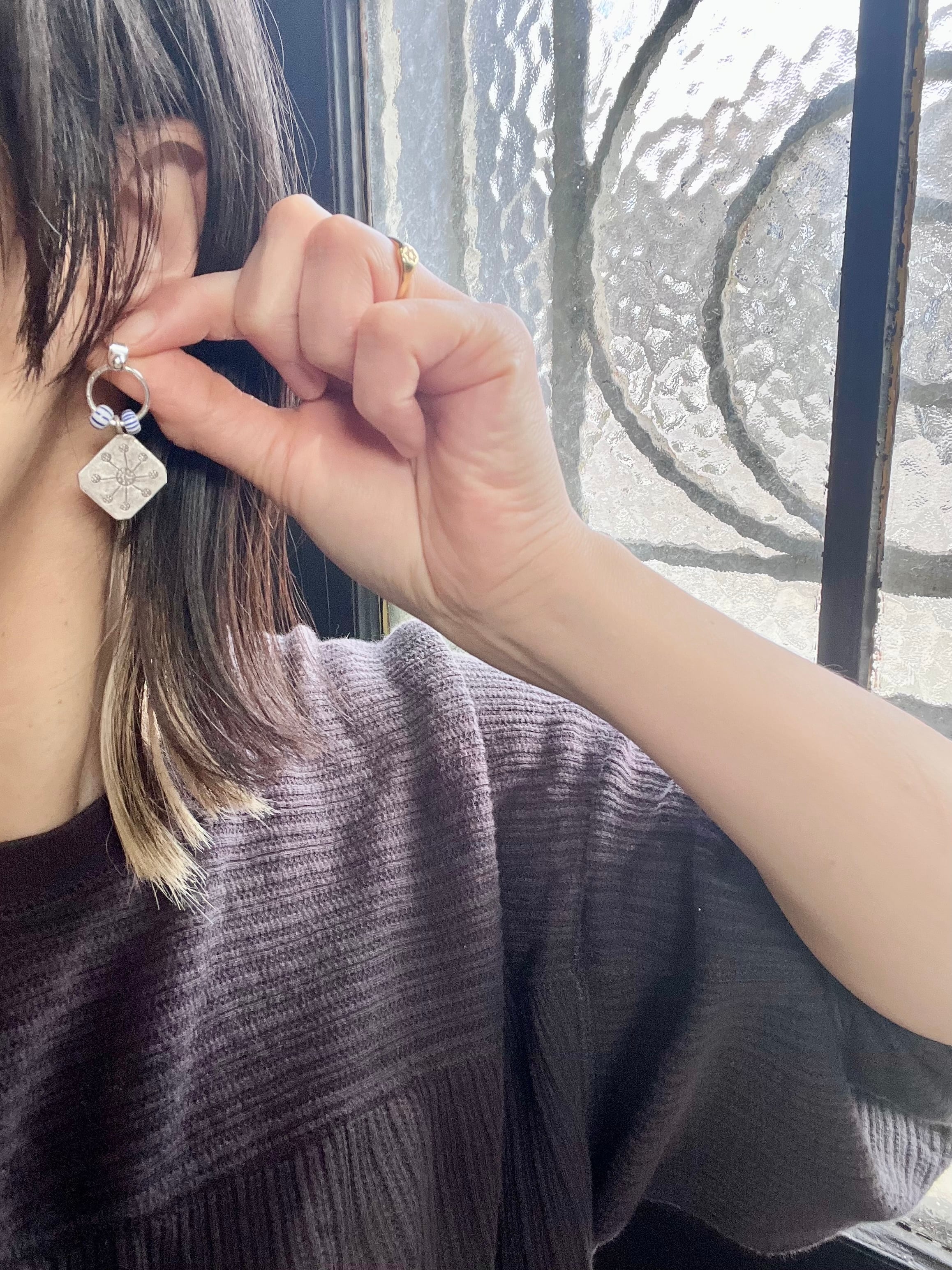 バックピンにチャームが付いていますので耳の後ろからチャームが覗きます◎