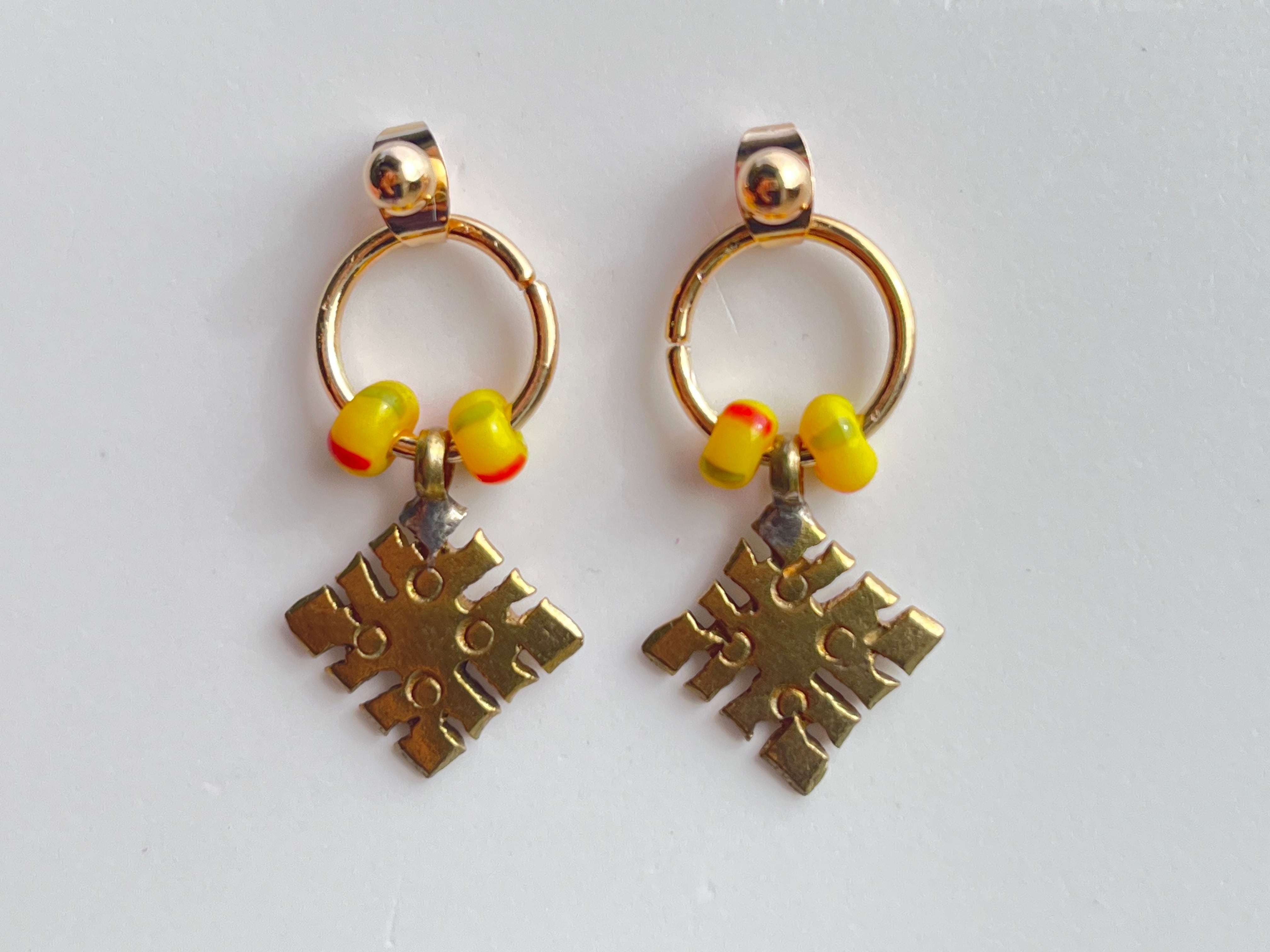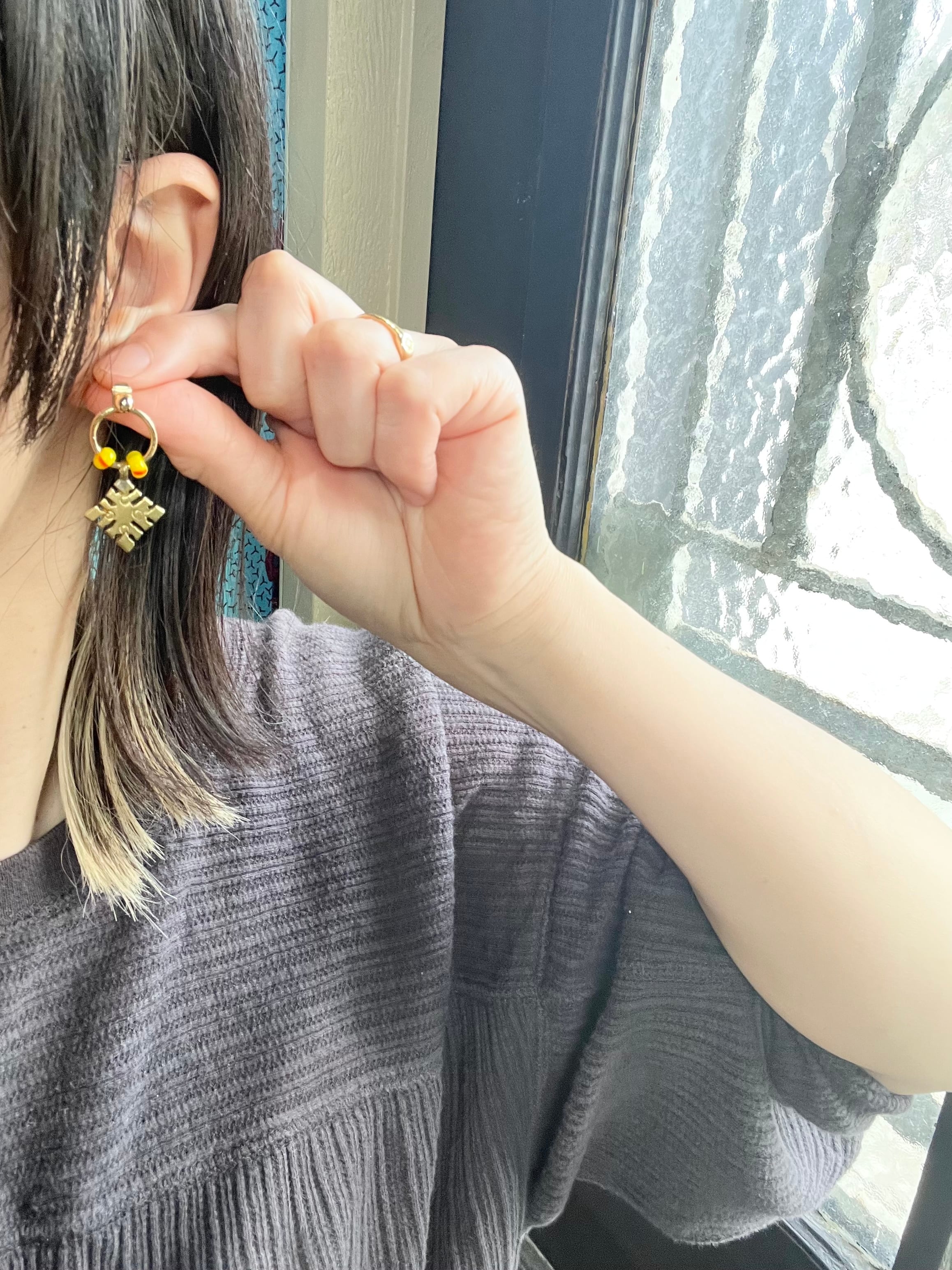エチオピアンクロスとアフリカンビーズを使用したピアスです。