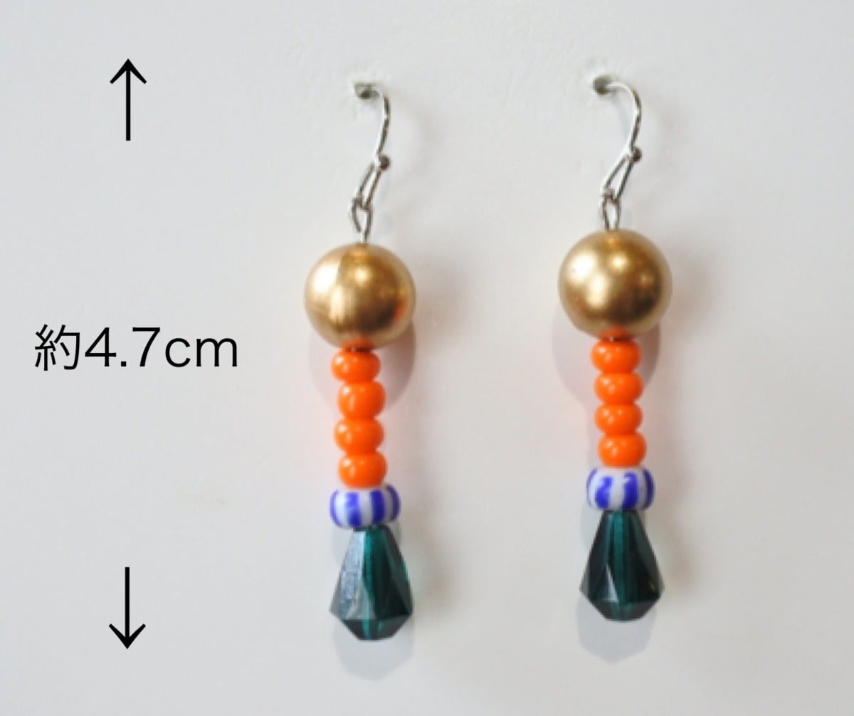 ゴールドビーズと鮮やかなオレンジが印象的なピアスです。