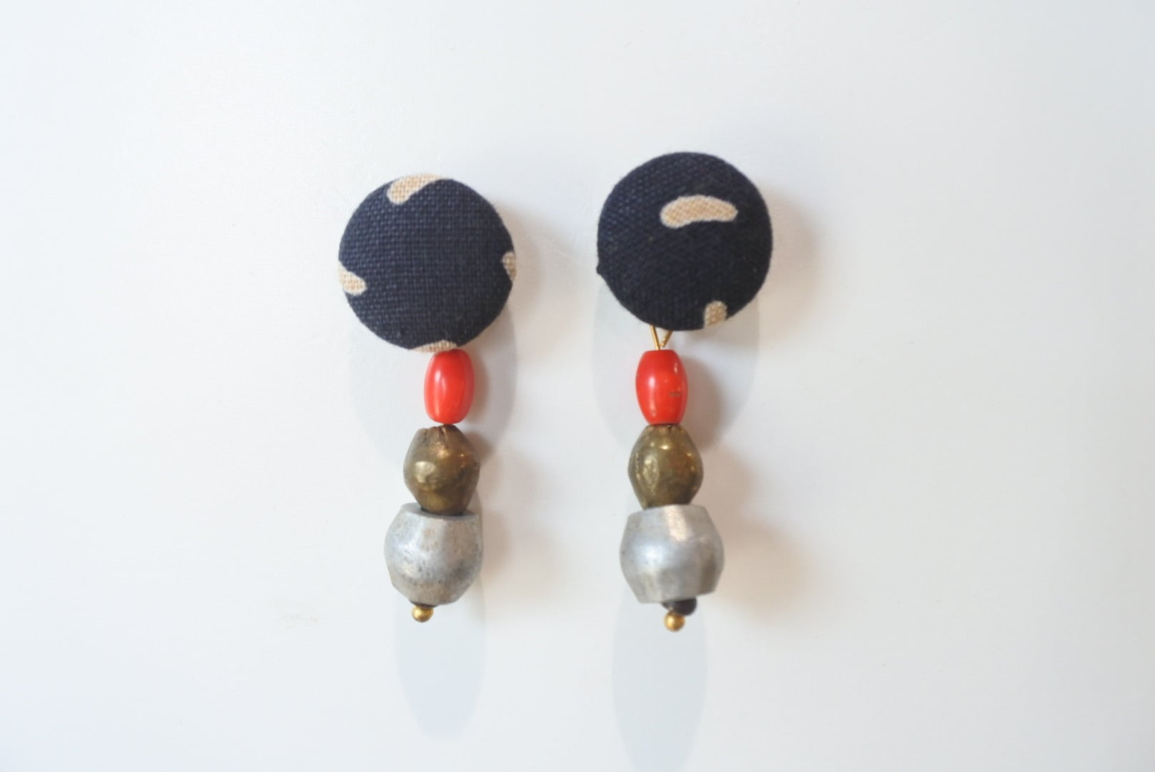 アフリカンファブリックとアフリカンビーズ等を使用した2Wayピアス。