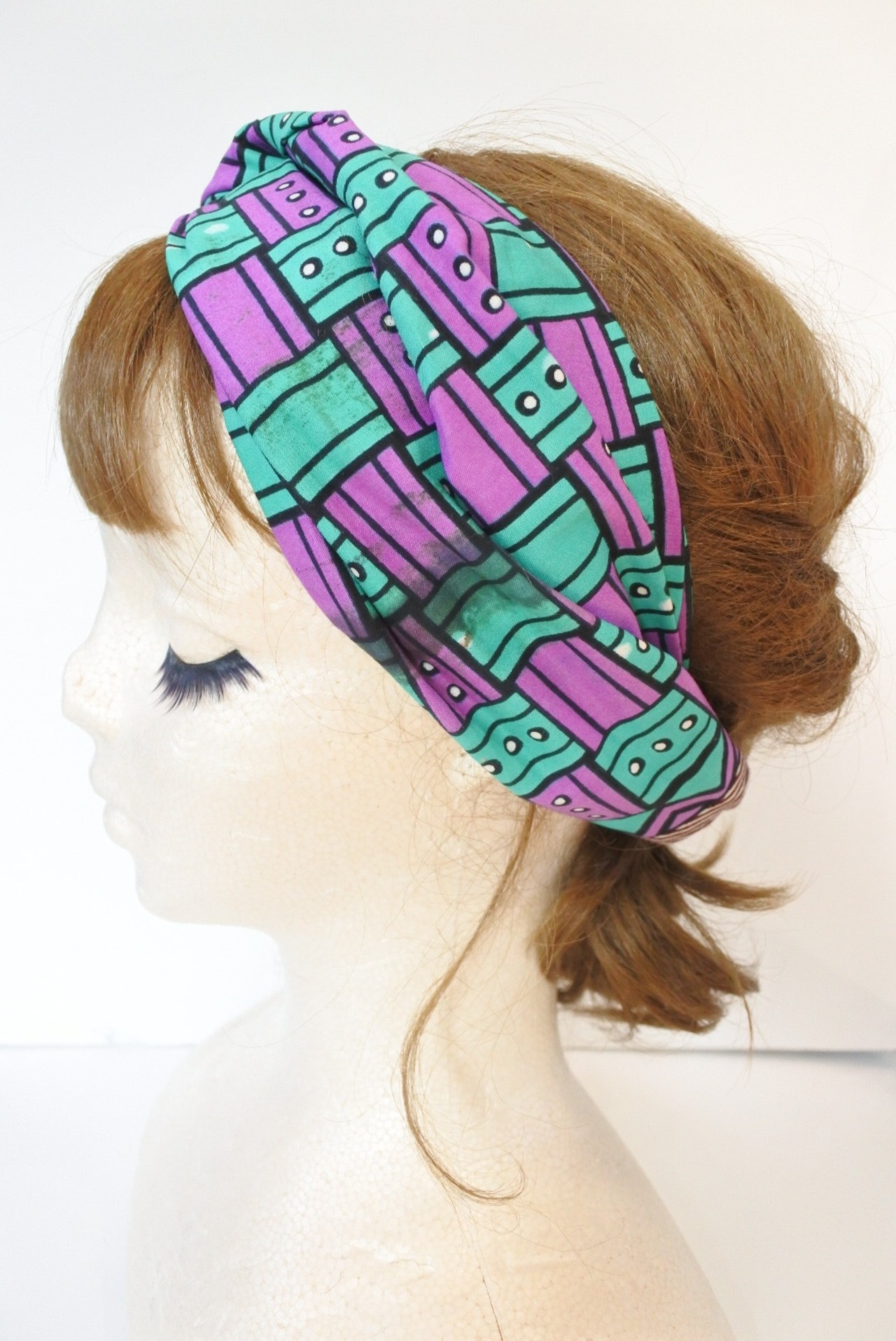 鮮やかなアフリカンファブリックがコーディネートのポイントになるヘアバンドです。