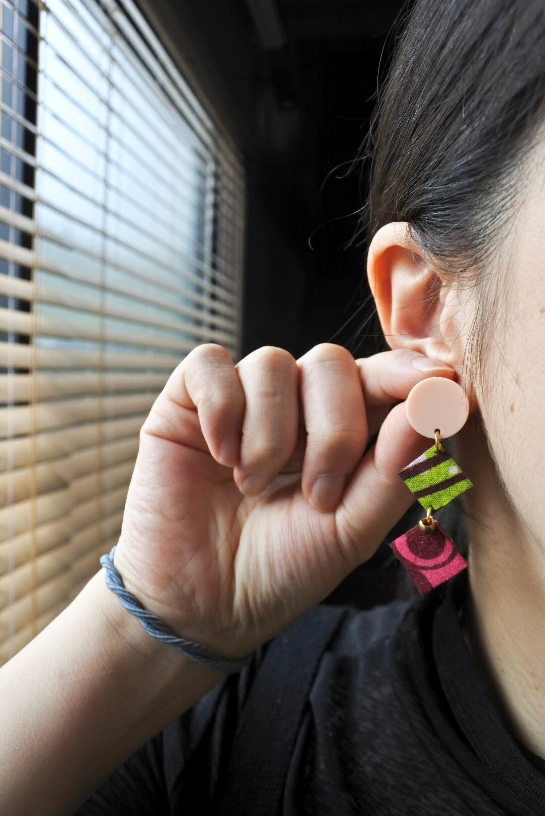 まる、四角が可愛いアフリカンファブリック使用したピアス。